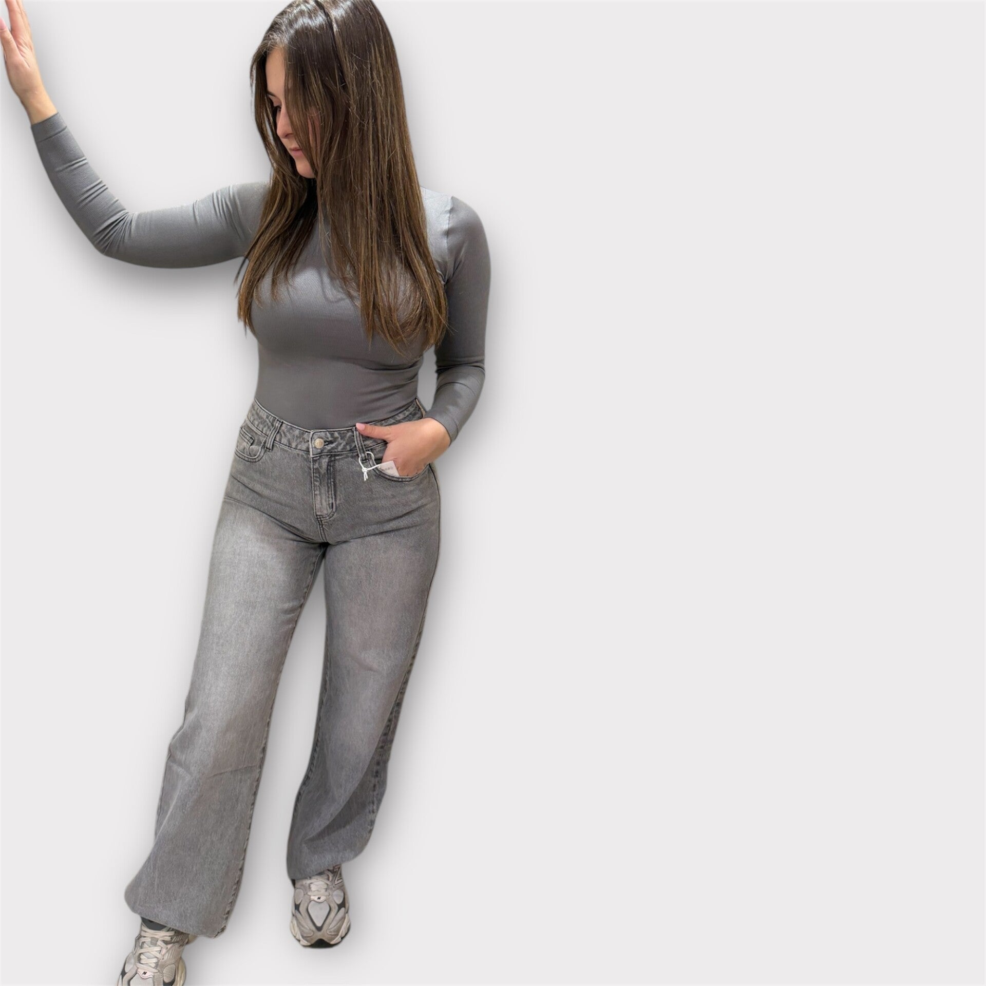 Jeans a palazzo , davanti si presenta semplice ma dietro ha la particolarità della tasca piena di strass con due strappi , uno foderato con tessuto jeans lavaggio zero e l'altro con strassi identici alla tasca!