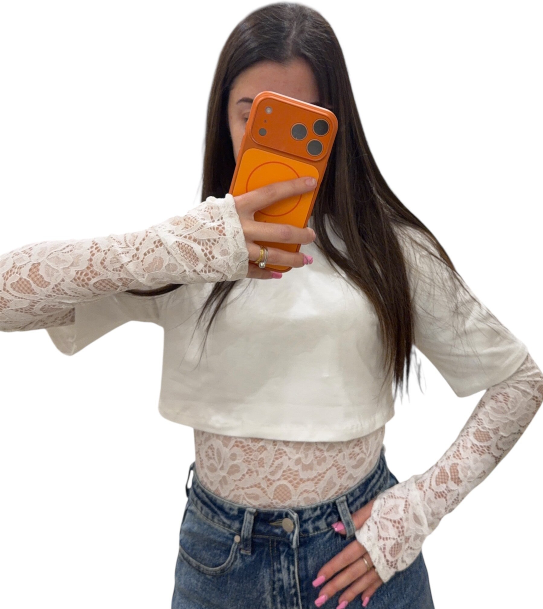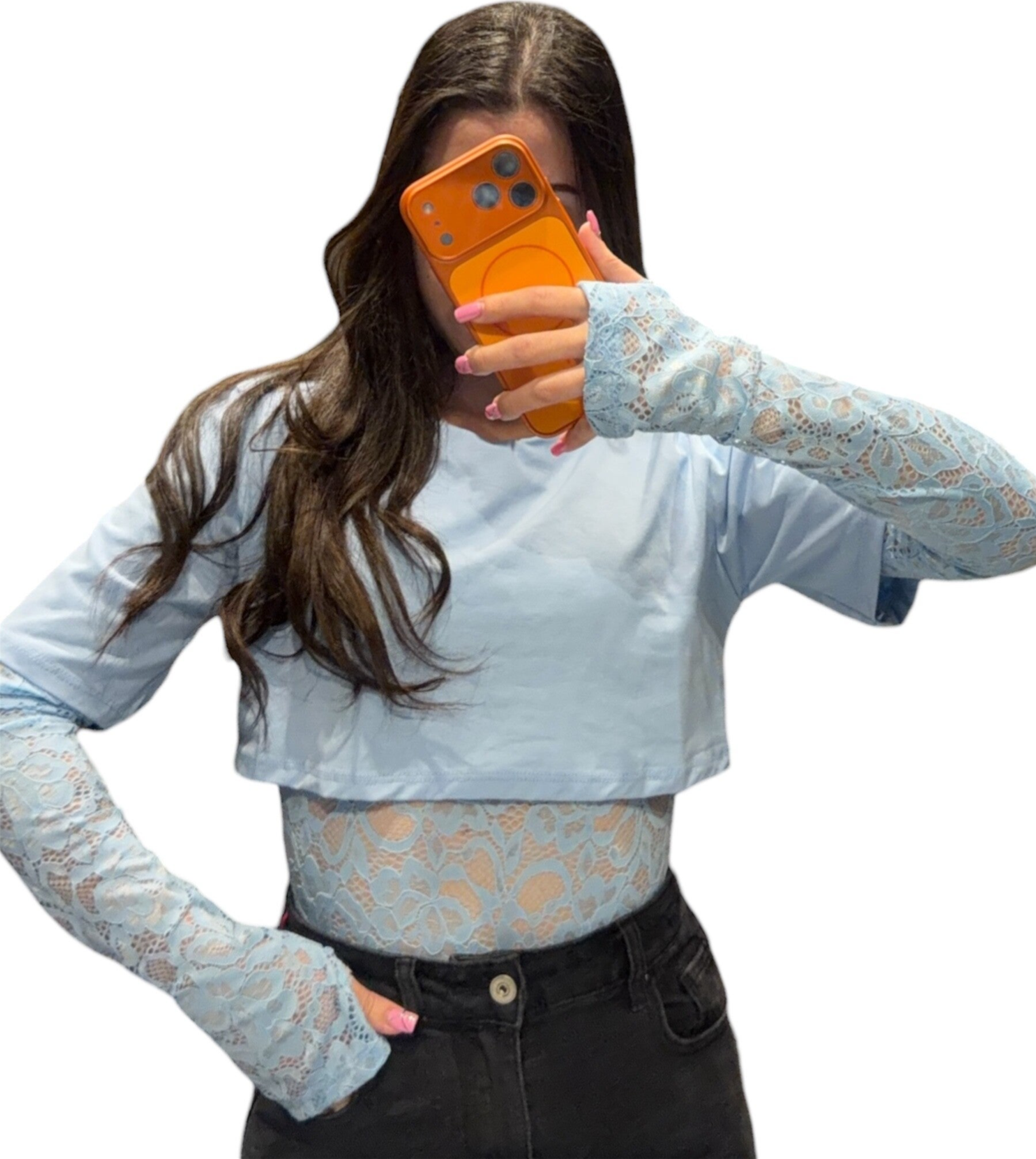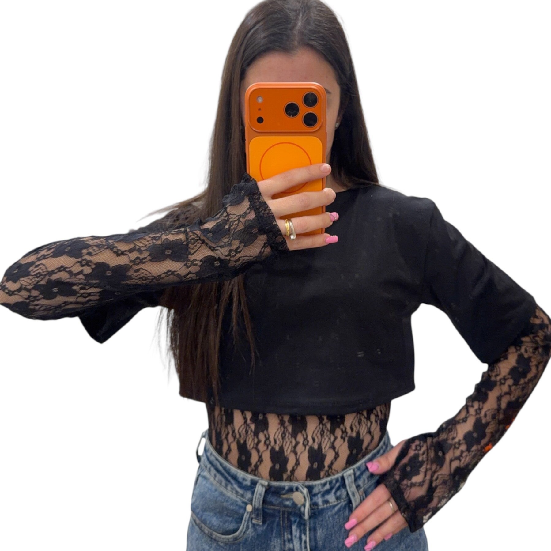 Body sgambato , con Crop attaccato alla parte in pizzo 🦋 Maniche con manicotto