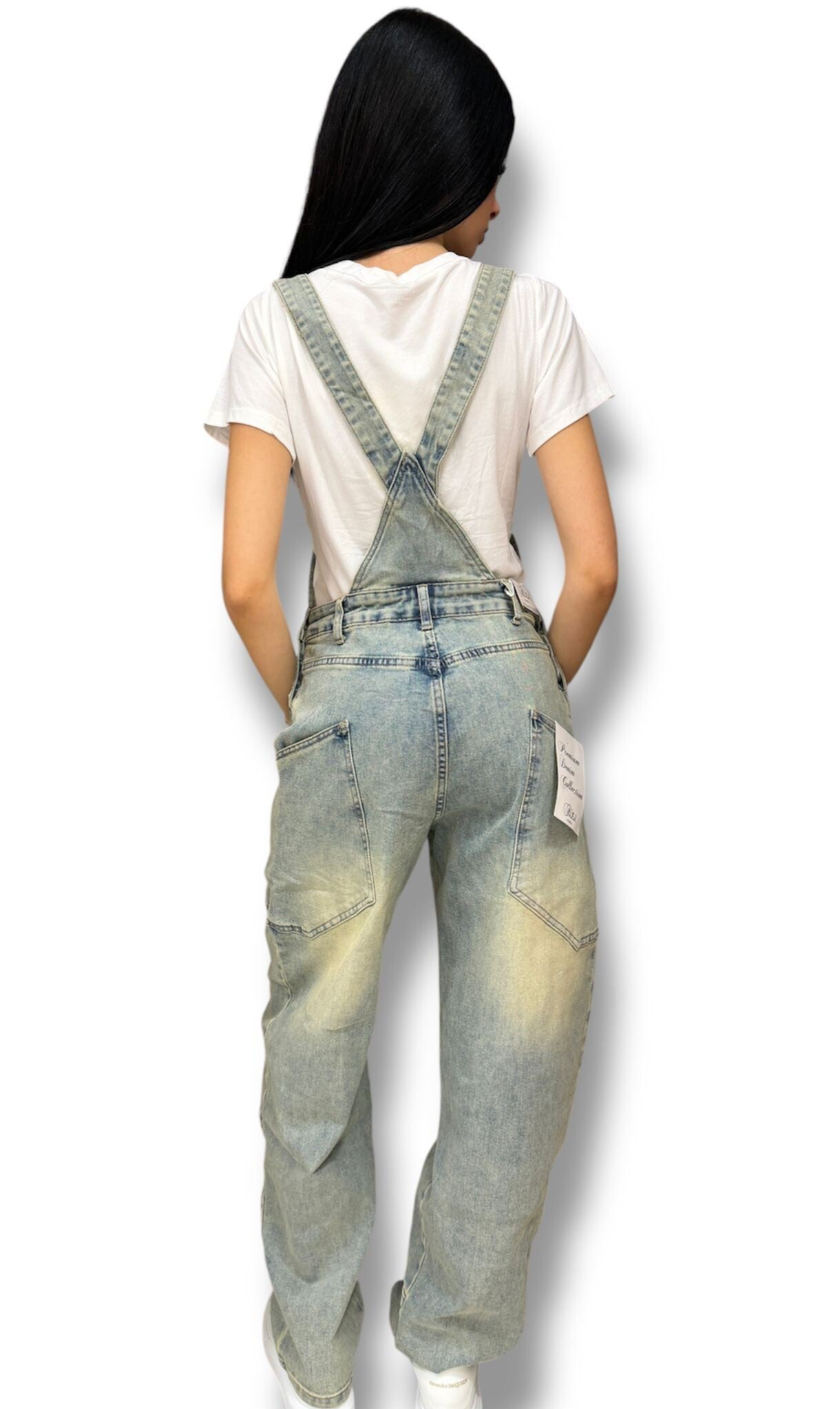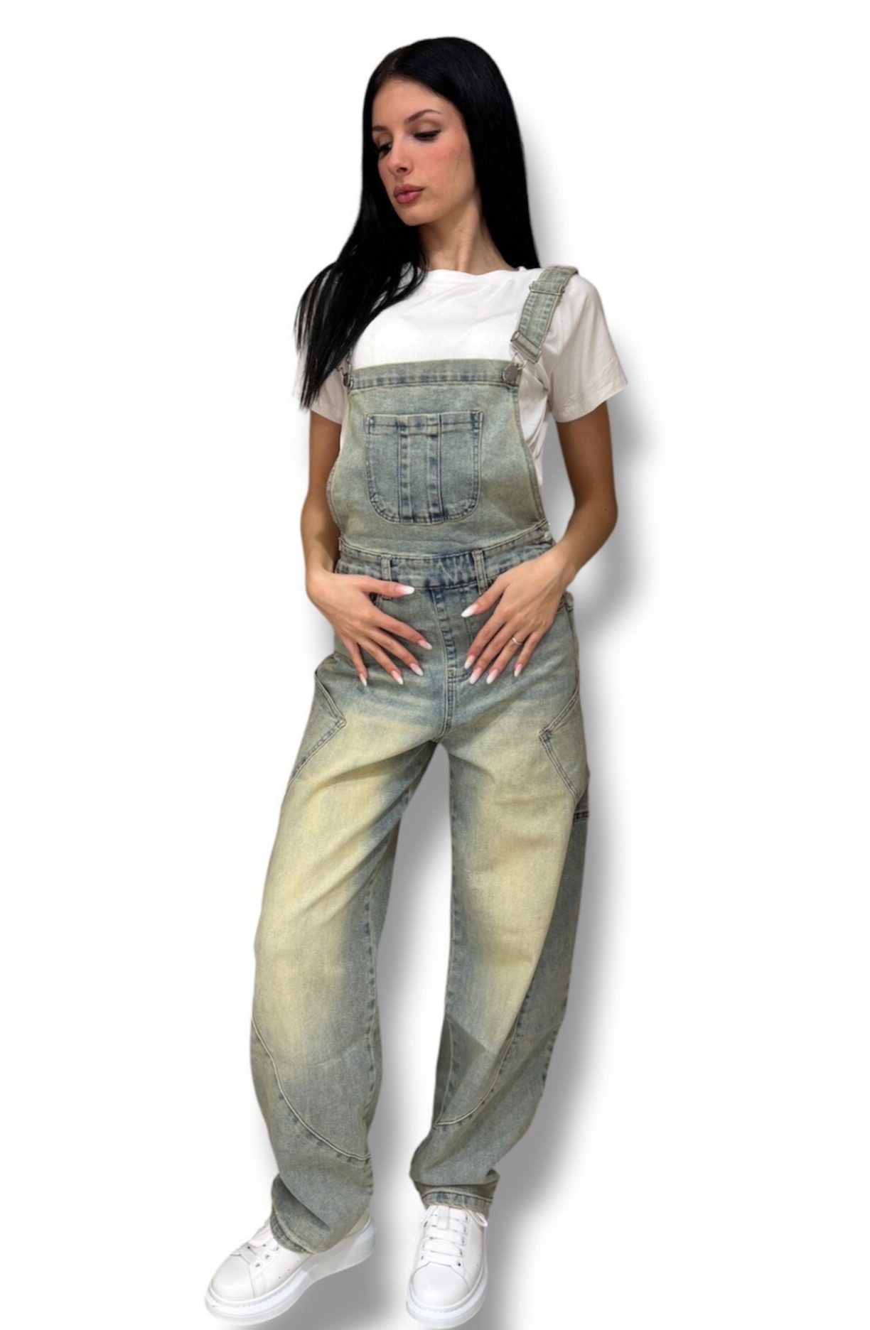 Una salopette perfetta per ogni occasione! Il pantalone umodello balloon e in denim tendente al beige.